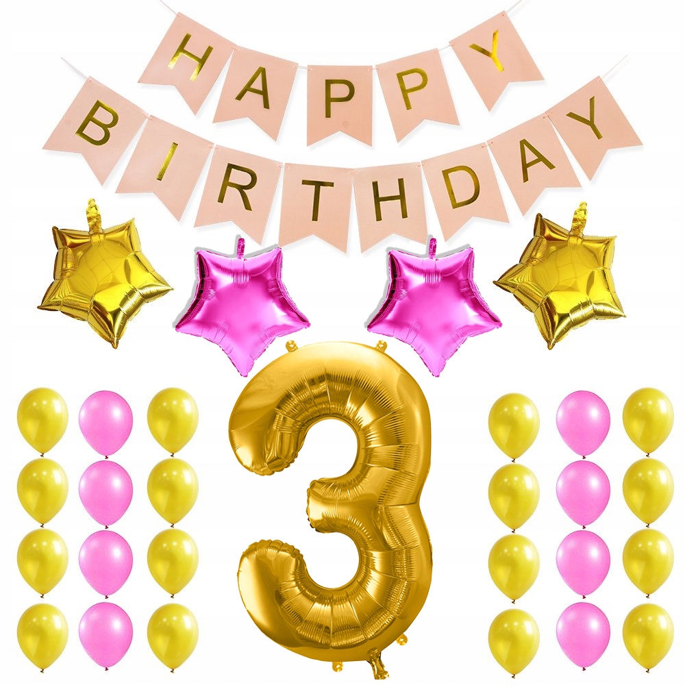 Zestaw Dekoracyjny na 3 Urodziny Balony Baner