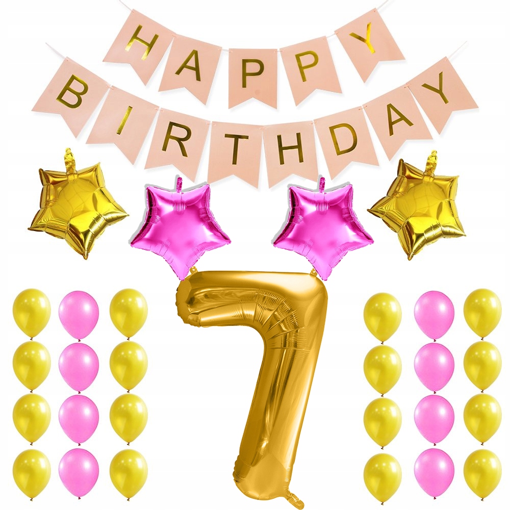 Zestaw Dekoracyjny na 7 Urodziny Balony Baner