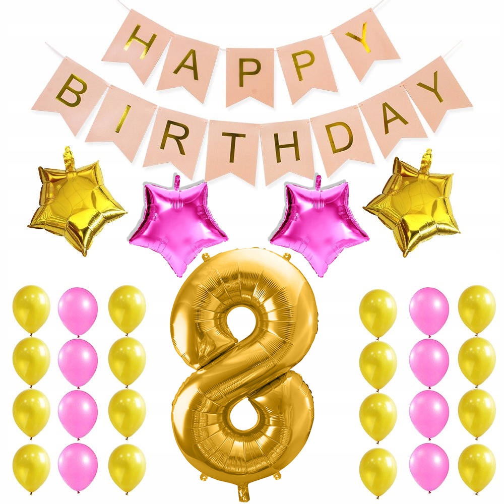 Zestaw Dekoracyjny na 8 Urodziny Balony Baner