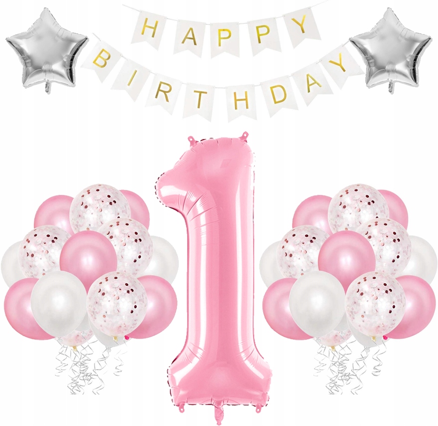 Zestaw balonów na pierwsze urodziny roczek pastelowy róż