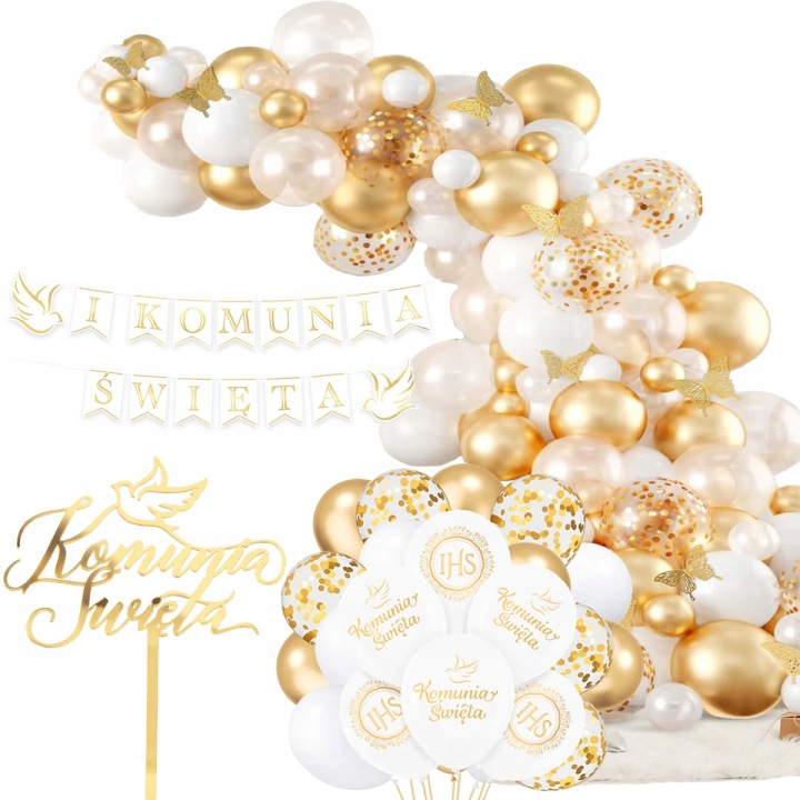 Zestaw dekoracji komunijnych - Balony Baner Topper 100szt