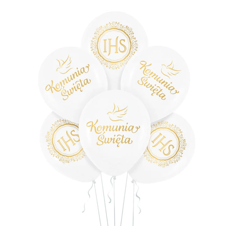 • 6 balonów z nadrukiem komunijnym – 30 cm