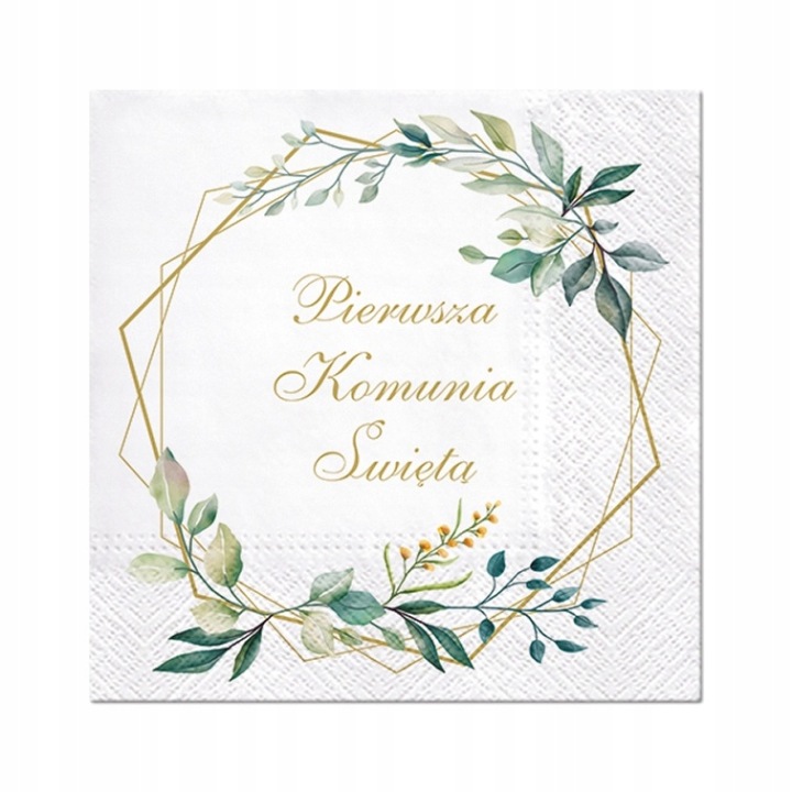 • 20 serwetek komunijnych ze złotym nadrukiem – 33 × 33 cm