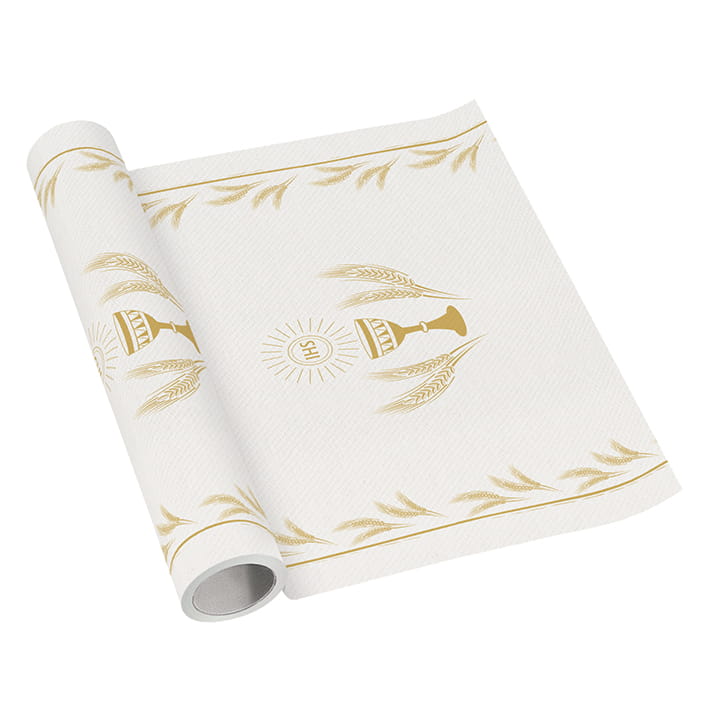 Bieżnik został wykonane w technologii Airlaid. Jest to specjalny rodzaj surowca, z którego produkowane są serwetki premium dla branży HoReCa. To wyjątkowo trwały i chłonny materiał o eleganckiej teksturze, do złudzenia przypominającej prawdziwe tekstylia. Serwetki posiadają certyfikat FSC oraz atest wystawiany przez Narodowy Instytut Zdrowia Publicznego, świadczący o tym, że mogą mieć kontakt z żywnością oraz są przyjazne dla środowiska