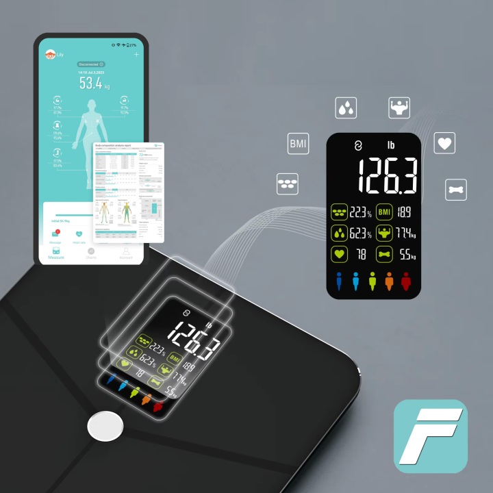 Ta waga to Twój osobisty asystent zdrowia. Wykorzystuje technologię analizy impedancji elektrycznej (BIA), aby dostarczać Ci danych niezbędnych do monitorowania Twoich osobistych wskaźników zdrowia: BMI (wskaźnik masy ciała), % tkanki tłuszczowej, wody w organizmie, masy mięśniowej, masy kostnej, białka i wiele innych! Mamy szczerą nadzieję, że korzystanie z nowego produktu będzie dla Ciebie przyjemnością.